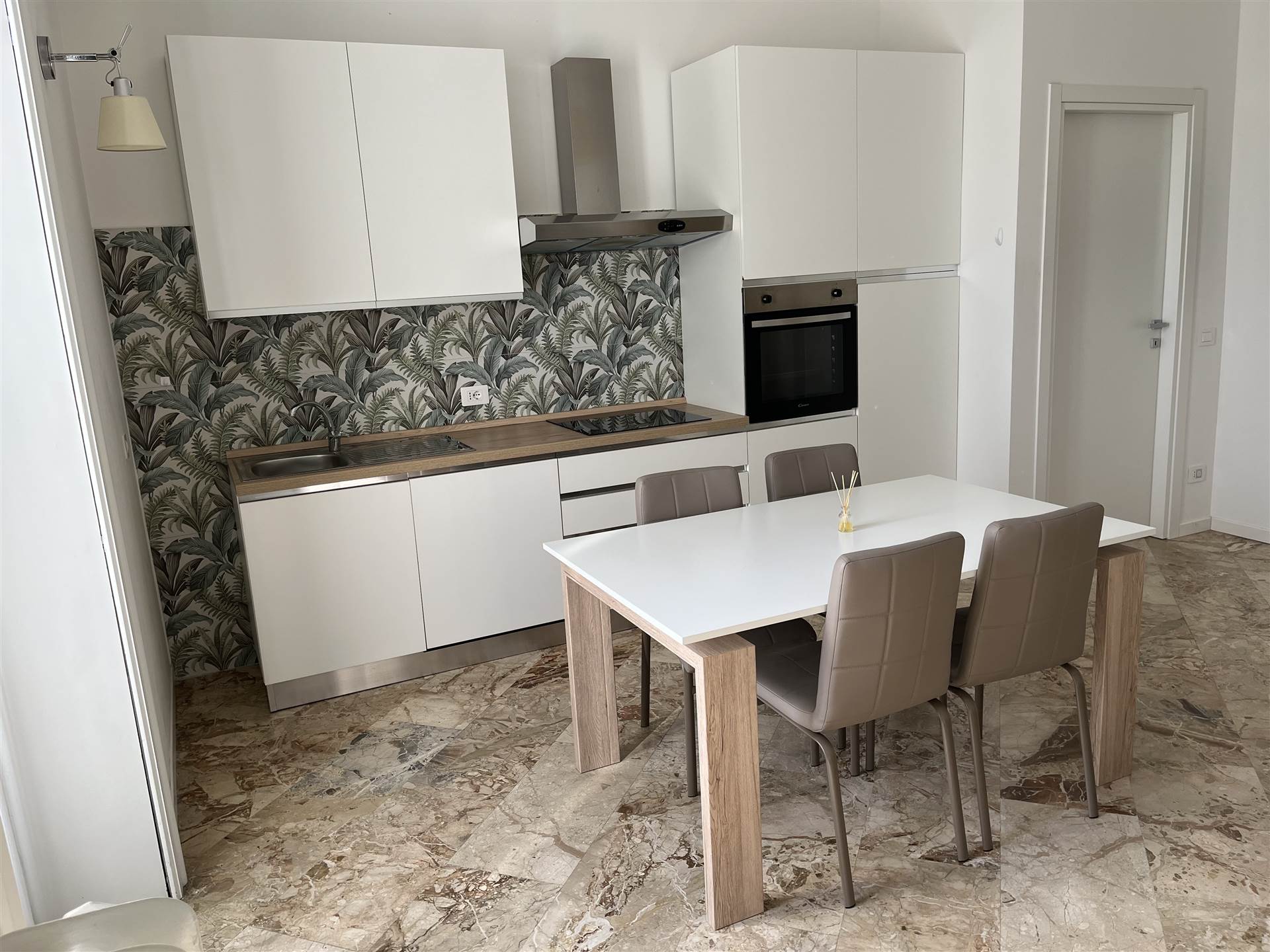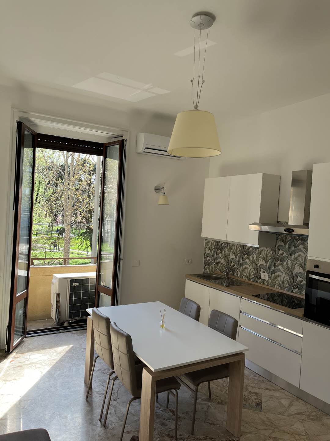 L'appartamento in questione è situato al primo piano (piano NOBILE con soffitti addirittura a 3,3 metri di altezza) ed affaccia totalmente sul sopracitato GIARDINO, è composto da un luminosissimo living con cucina a vista e balcone nella zona giorno ; mentre nella la zona notte troviamo l'antibagno con lavatrice e asciugatrice, bagno finestrato e una maestosa camera matrimoniale PADRONALE di ben 20mq, aria condizionata in tutti e due gli ambienti, ristrutturato ed arredato a nuovo.