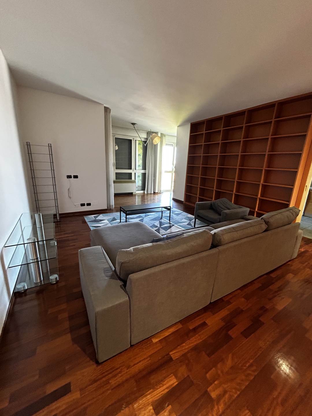 BICOCCA nella ELEGANTE ed ACCOGLIENTE RESIDENZA ESPLANADE, in piazza Daini 4, affittiamo uno SPLENDIDO TRILOCALE di 130 mq al SESTO piano, così composto: ingresso, ampio soggiorno, cucina abitabile grande, balcone loggiato, disimpegno notte, due camere da letto e doppi servizi, cantina doppia e box doppio compreso nel prezzo. Splendida vista sulla Villa degli Arcimboldi e il suo parco secolare. Completamente arredato in modo funzionale e moderno, completo di elettrodomestici e dotato di ogni comfort: portineria 12H, teleriscaldamento e teleraffrescamento a consumo, impianto di allarme.