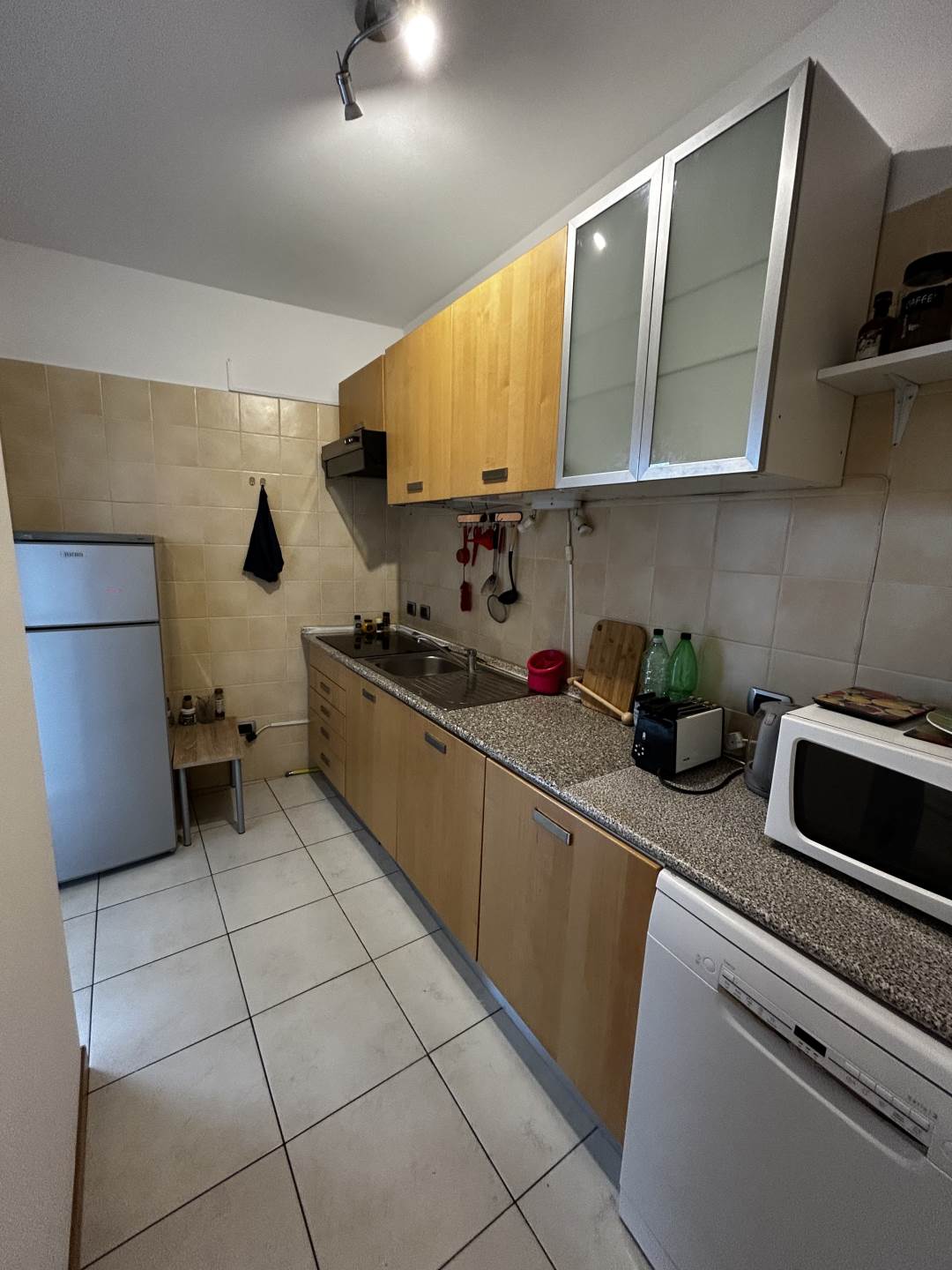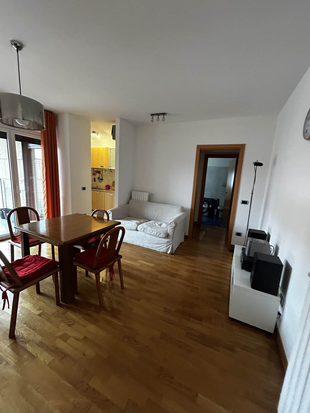 L'appartamento, all'ottavo piano, è composto da: ingresso che ci porta nella zona living, soggiorno e cucina separata, che affacciano su un terrazzino loggiato di 7 mq rivolto a SUD; dal disimpegno notte si raggiungono le due camere da letto e il bagno finestrato.